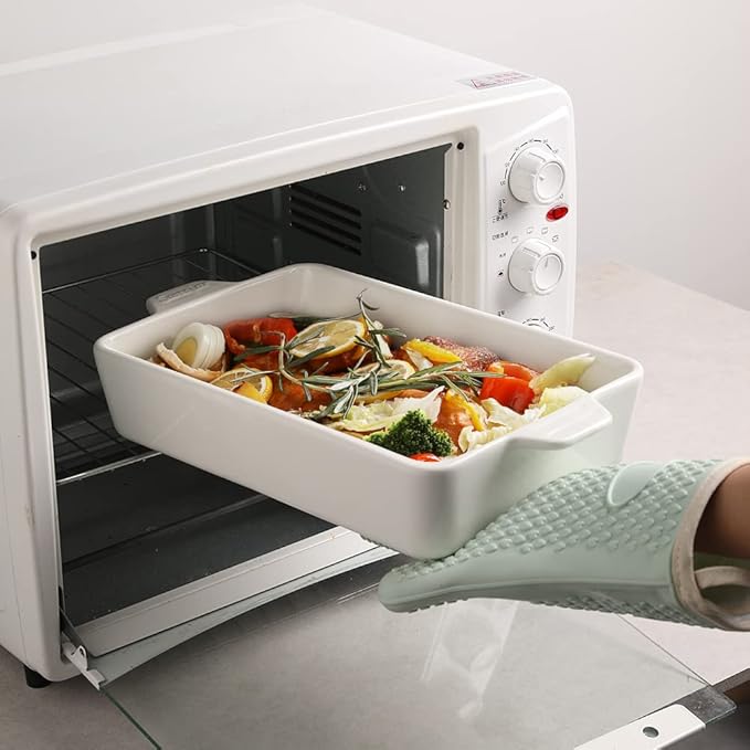 - Safe and Durable: Made of LEAD-FREE pro-grade ceramic,our baking pans are are durable and long-lasting. They are safe to use in dishwashers, refrigerators, microwaves, and ovens, ensuring convenience and peace of mind in your kitchen.