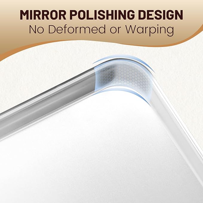 - Mirror Finish Design - these cookie sheets' surfaces are high mirrors polished to reduce the risk of food sticking together. smooth curvy edges make it very comfortable to hold and protect your hands