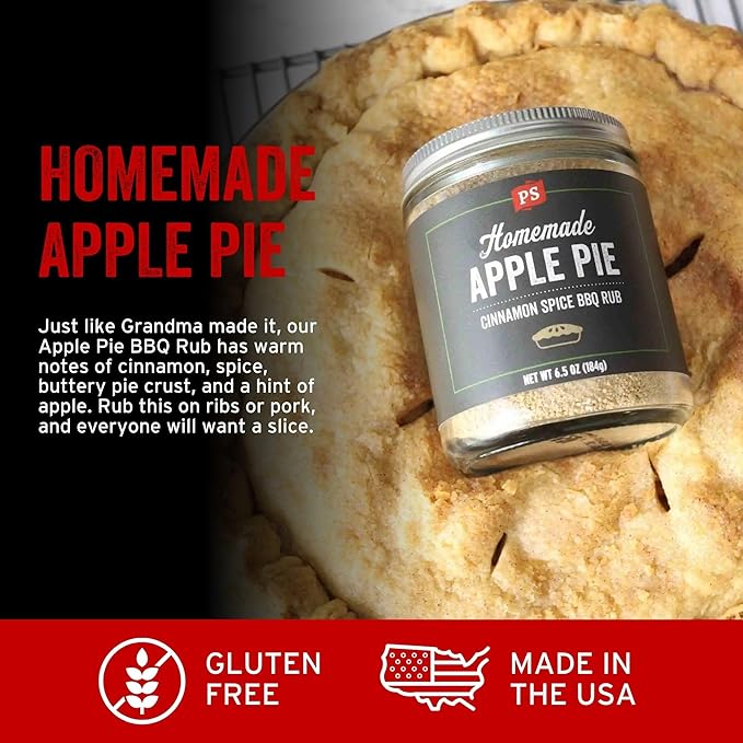 PS Seasoning Apple Pie Rub - Sweet and Smoky Cinnamon BBQ Seasoning for Smoking, Grilling, Baking - Buttery Apple Cinnamon Dry BBQ Rubs and Spices for Grilling Pork Chops, Ribs, Tenderloin, Turkey