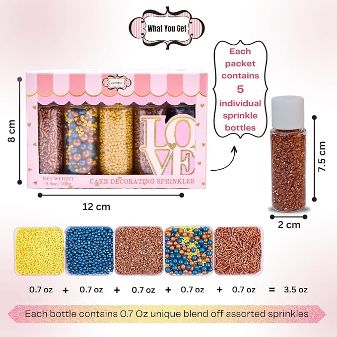 - Assorted Sprinkle Pack (Set of 5) – Includes a vibrant Graduation Day Mix featuring Yellow, Copper, and Navy Blue tones perfect for festive baking and celebrations.