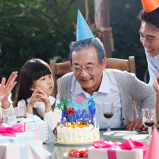 Rsstarxi 1 Pack Beach Happy Birthday Cake Topper Glitter Flower Crab Palm Leaf Surfboard Cake Pick for Beach Surfing Hawaii Luau Theme Baby Shower Kids Boys Girls Birthday Party Cake Decorations