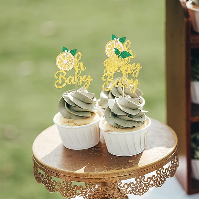 24 Pack Lemon Oh Baby Cupcake Toppers Glitter Baby Shower Cupcake Picks Summer Lemon Fruit Cake Decorations for Kids Birthday Theme Baby Shower Party Supplies