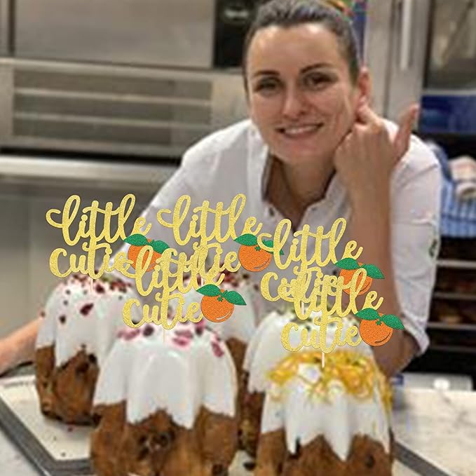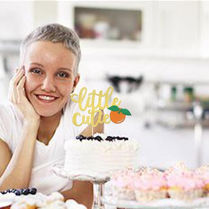 1 Pack Little Cutie Cake Topper Glitter Orange Cake Pick Citrus Theme Baby Shower Kids Birthday Party Tangerine Clementine Fruit Party Cupcake Decorations Supplies