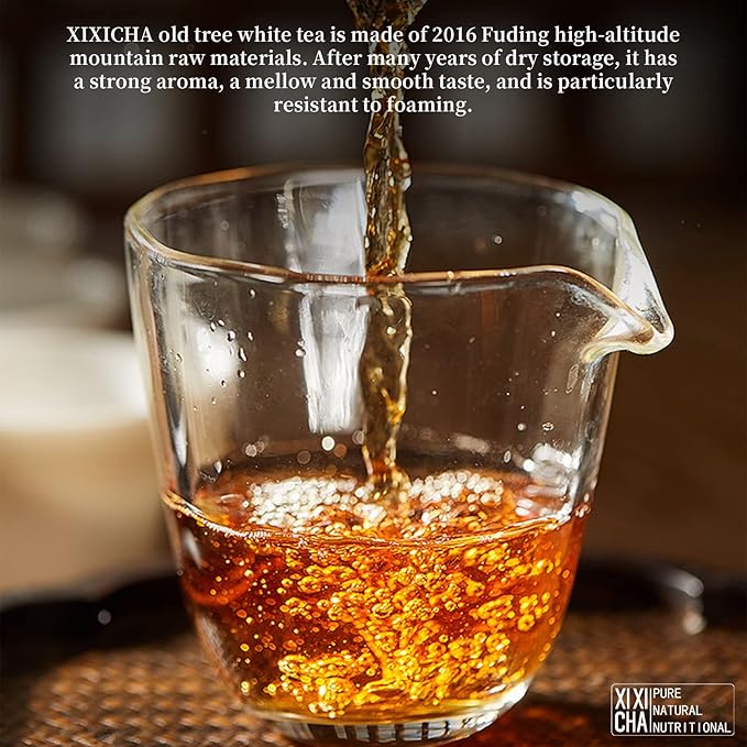 - XIXICHA old tree white tea is made of 2016 Fuding high-altitude mountain raw materials. After many years of dry storage, it has a strong aroma, a mellow and smooth taste, and is particularly resistant to foaming. old white teacan be drunk for a long time.