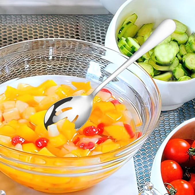 - Includes 2 salad serving spoons, 2 slotted serving spoons and 2salad serving forks