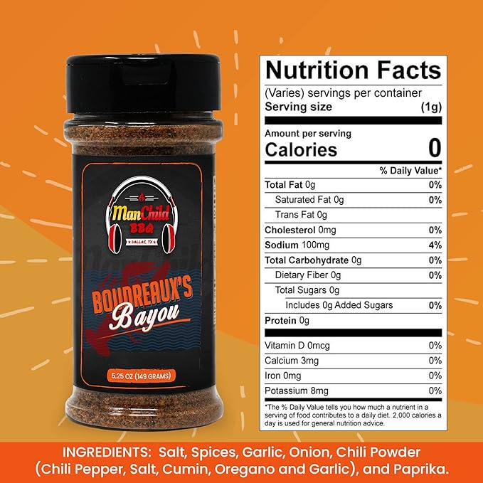 Cajun Seasoning Mix (NO MSG, Low Sodium) | Boudreaux's Bayou Seafood Boil Seasonings | Rubs for Smoking & Cooking | Chicken, Fish, Salmon, Shrimp, Turkey Spice Rub by Manchild | Gluten Free | 5.25 Oz