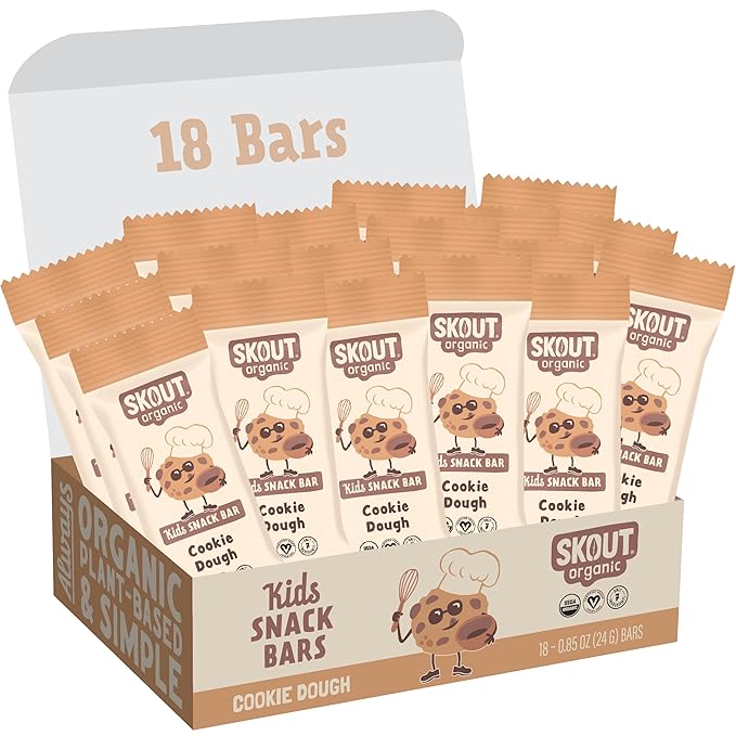 Skout Organic Cookie Dough Kids Snack Bars (18 Pack) | Organic Kids Snack Bars | School Snacks & Lunch Snacks | Vegan & Paleo | Gluten, Dairy, Grain, Peanut Free