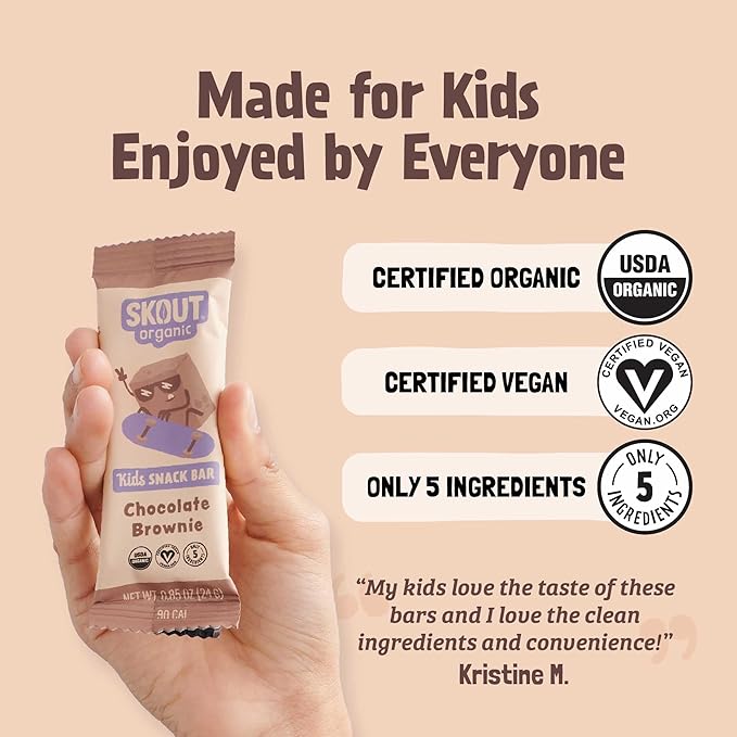 Skout Organic Chocolate Brownie Kids Snack Bars (18 Pack) | Organic Kids Snack Bars | School Snacks & Lunch Snacks | No Refined Sugar | Vegan & Paleo | Gluten, Dairy, Grain, Peanut Free