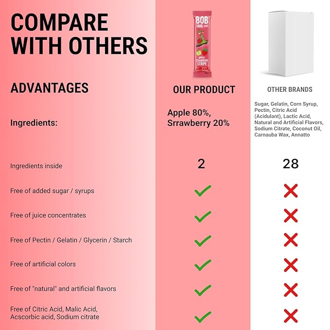 - 30 SNACKS FOR ADULTS AND KIDS: Natural fruit leather is made of pure fruits and nothing else; These are great healthy snacks for kids and toddlers; Bob Snail fruit strips protect your energy, sets the right attitude and mood for the whole day
