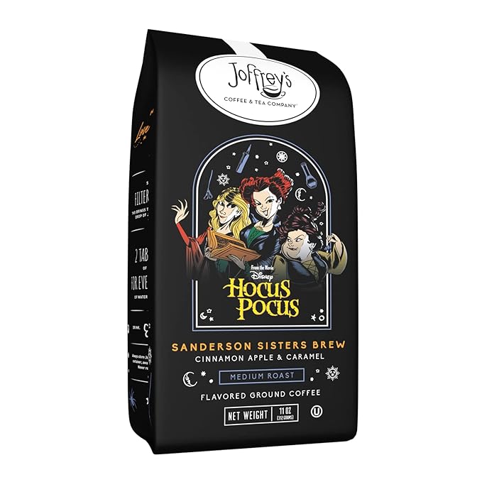 Joffrey's Coffee - Disney Hocus Pocus Sanderson Sisters Brew, Disney Specialty Collection, Medium Roast Flavored Coffee, Cinnamon Apple & Caramel Flavor, Brew or French Press (Ground, 11oz)
