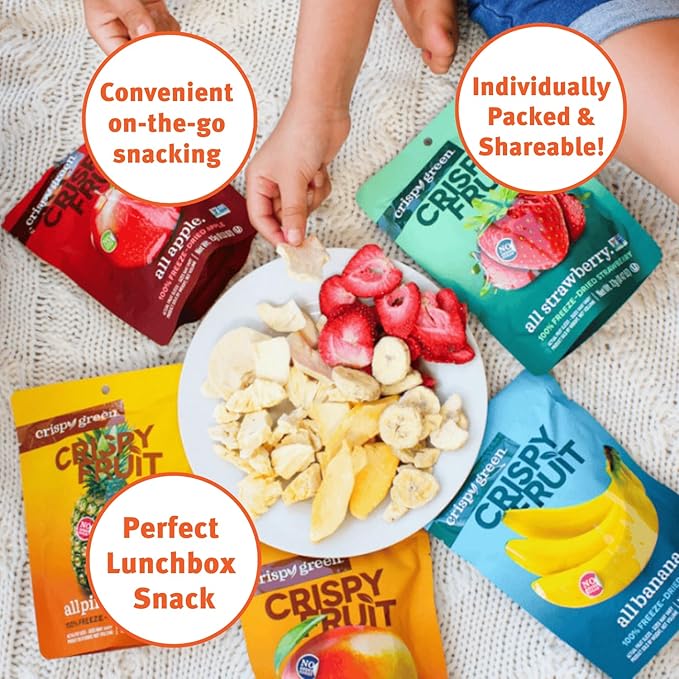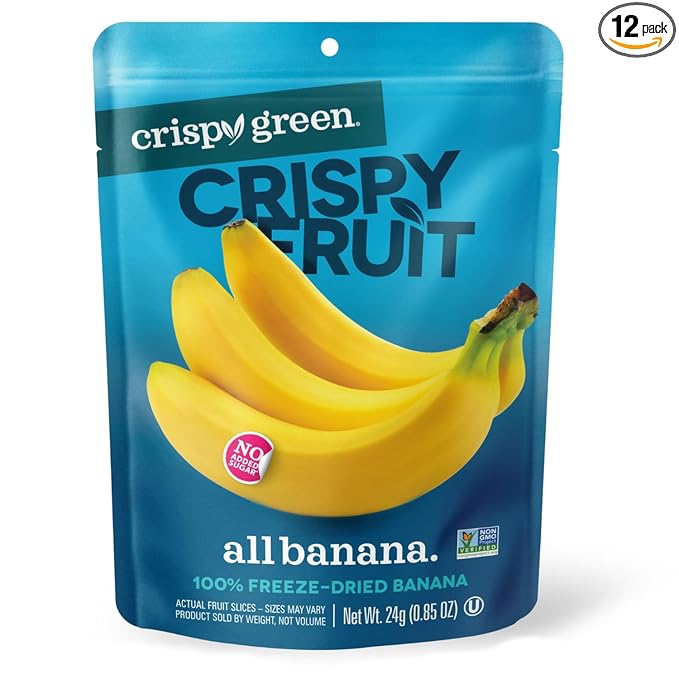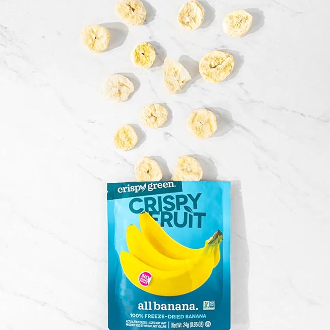 Crispy Green Natural Freeze-Dried Fruit, Banana Single-Serve, No Sugar Added, 0.85 Ounce (Pack of 12)