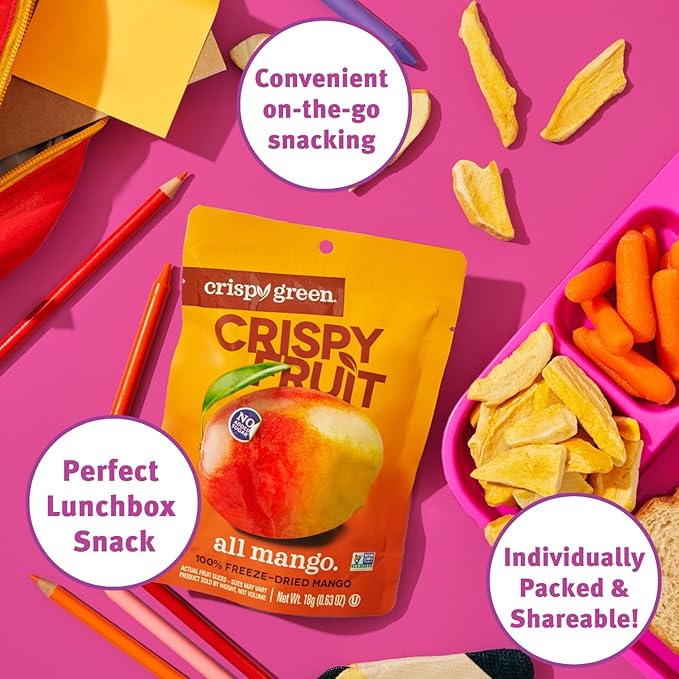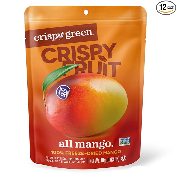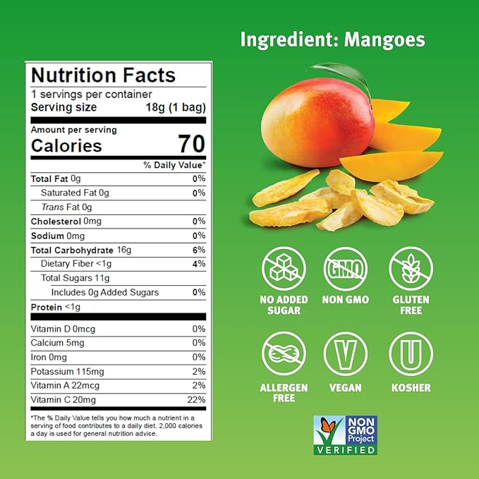 - CONTAINS: 12 convenient single-serve bags high-quality, freeze-dried Crispy Fruit Mangoes only contain one single ingredient, Mangoes!