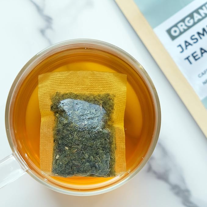 Fescha Organic Jasmine Green Tea Bags, Flower-scented Tea (50-count), Eco-Conscious Tea Bags, Packed by Resealable Kraft Bag