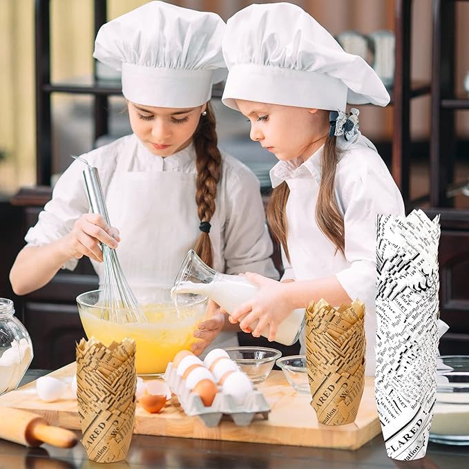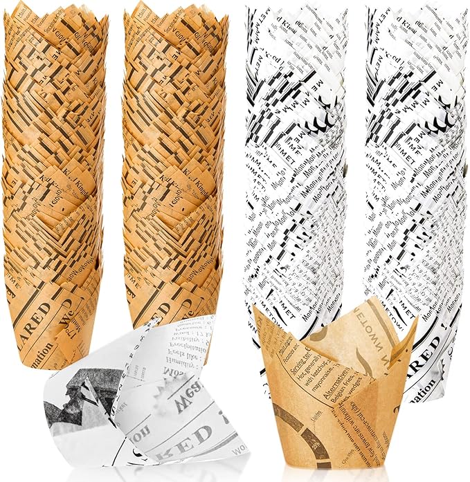 800 Pcs Tulip Cupcake Liners Baking Cups Muffin Baking Cupcake Liners Wrappers Greaseproof Tulip Cups Holders for Party Wedding Birthday Baby Showers(Newspaper,Retro Style)