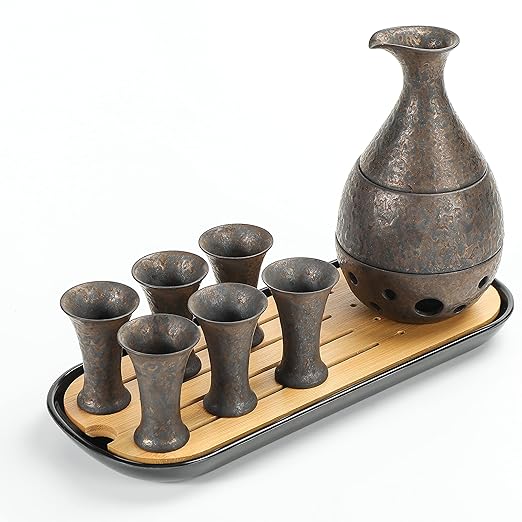 - GREAT FOR HOT & COLD SAKE: The sake bottle comes with 3 parts ,the inner carefe with beveled mouth is great to pour sake, the middle bowl vessel is to add hot water or ice cubs when you need, so easy to warm or cold sake without diluting it. The base stove allow to put candle inside to keep the warmer water much longer if need.