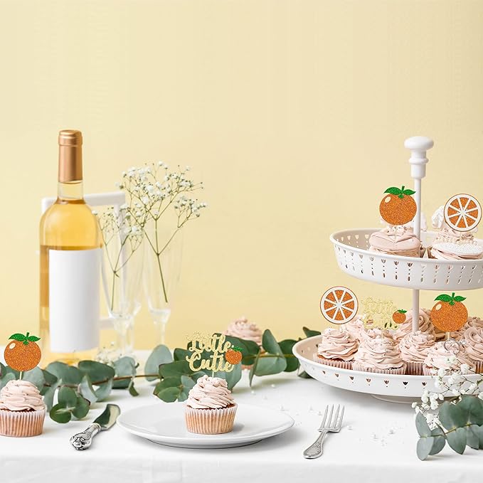 24Pcs Little Cutie Cupcake Toppers Glitter Orange Cupcake Picks Citrus Theme Baby Shower Decorations for Cutie Kids Birthday Party Tangerine Theme Baby Shower Fruit Party Supplies