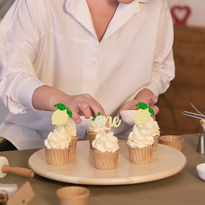 24Pcs Lemon One Cupcake Toppers Glitter Fruit Lemonade First Birthday Cupcake Picks for Lemon Theme Baby Shower 1st Birthday Party Cake Decorations Supplies