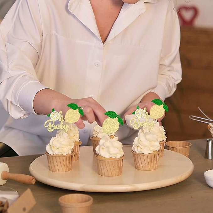 24Pcs Lemon Oh Baby Cupcake Toppers Glitter Fruit Theme Oh Baby Lemonade Party Cupcake Picks for Lemon Theme Baby Shower Kids Boys Girls Birthday Party Cake Decorations Supplies