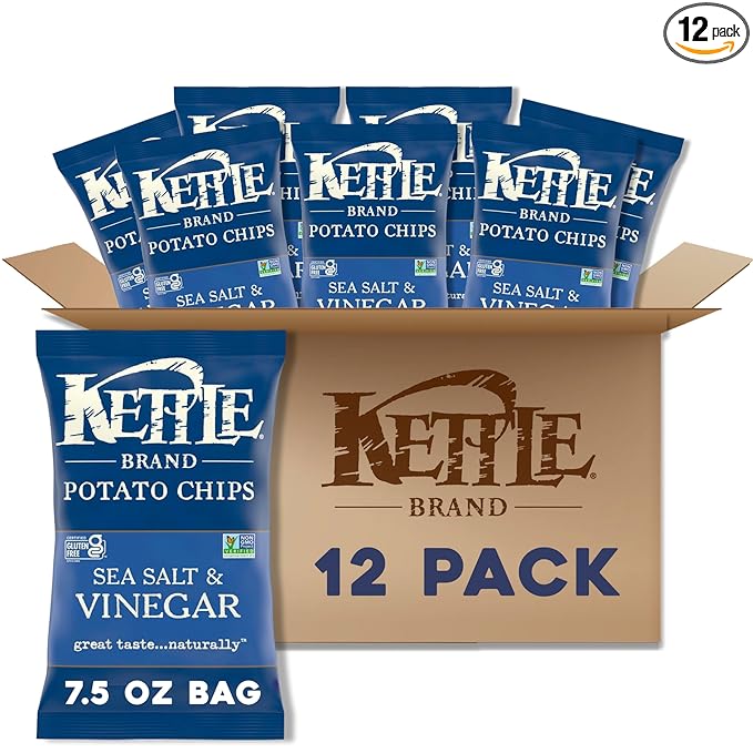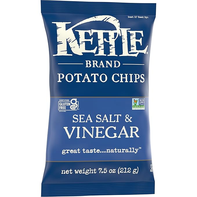- SEA SALT AND VINEGAR CHIPS: Kettle Brand Sea Salt and Vinegar Kettle Potato Chips strike a delicate balance between zesty sea salt and tongue-puckering vinegar
