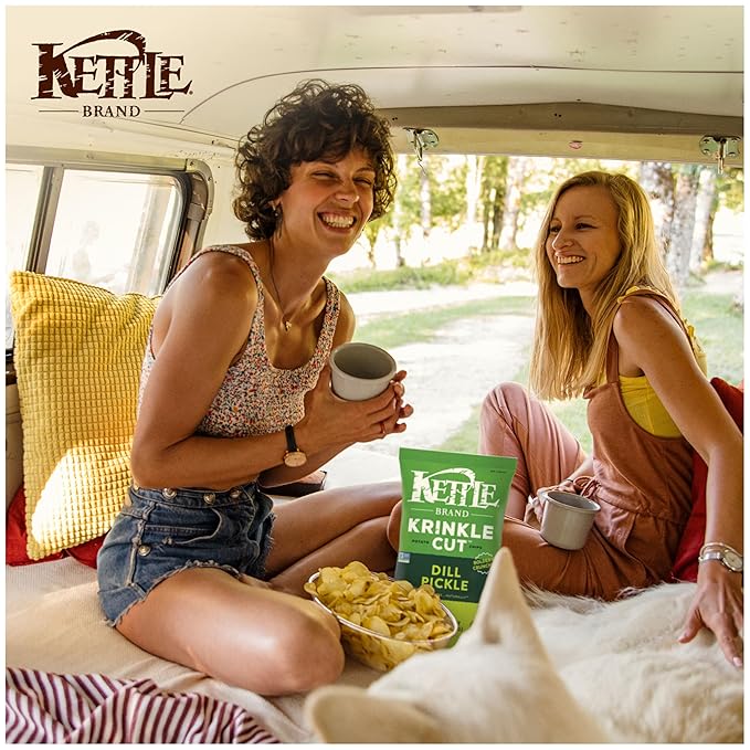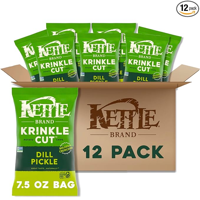 Kettle Brand Potato Chips, Krinkle Cut, Dill Pickle Kettle Chips, 7.5 Oz (Pack of 12)
