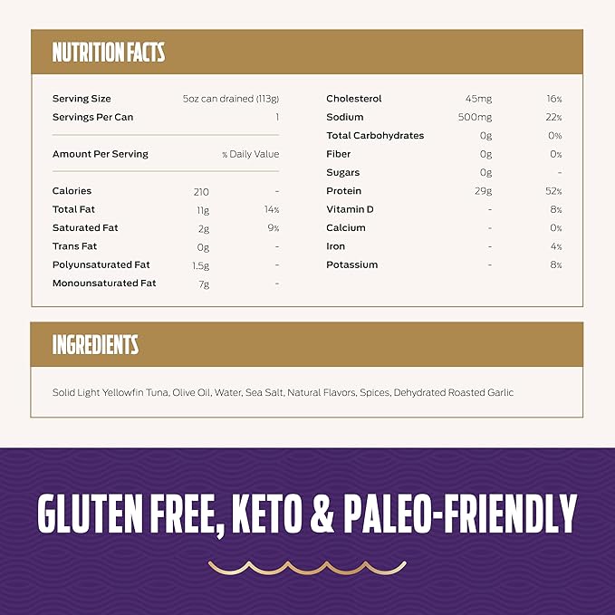 - INCREDIBLE INFUSED FLAVOR: Genova Premium Yellowfin Tuna in Garlic and Tuscan Herb Infused Olive Oil features high-quality cuts of the fish, wild caught and hand-filleted for rich Mediterranean flavor and perfect texture