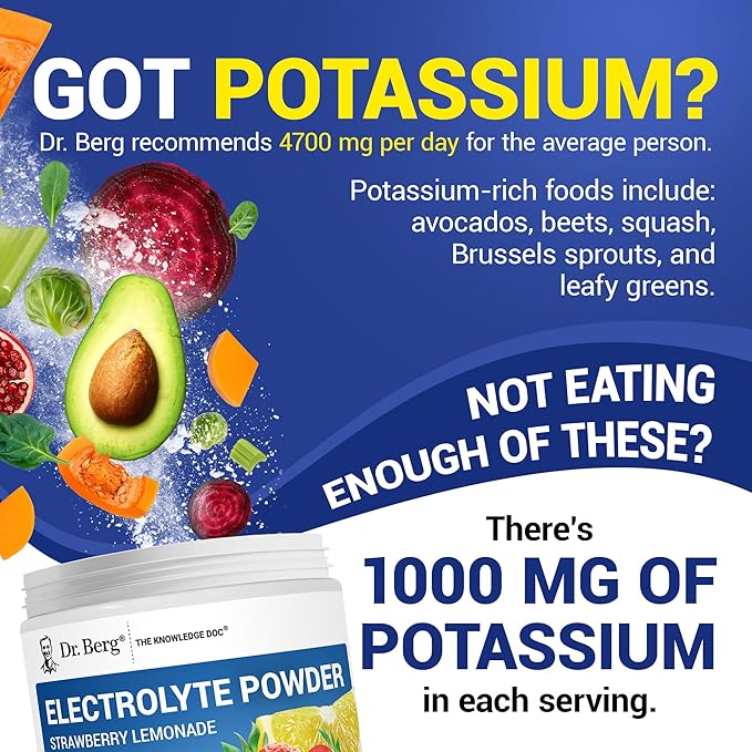 Dr. Berg Zero Sugar Hydration Keto Electrolyte Powder - Enhanced w/ 1000 mg of Potassium & Real Pink Himalayan Salt (NOT Table Salt) - Strawberry Lemonade Hydration Drink Supplement - 50 Servings
