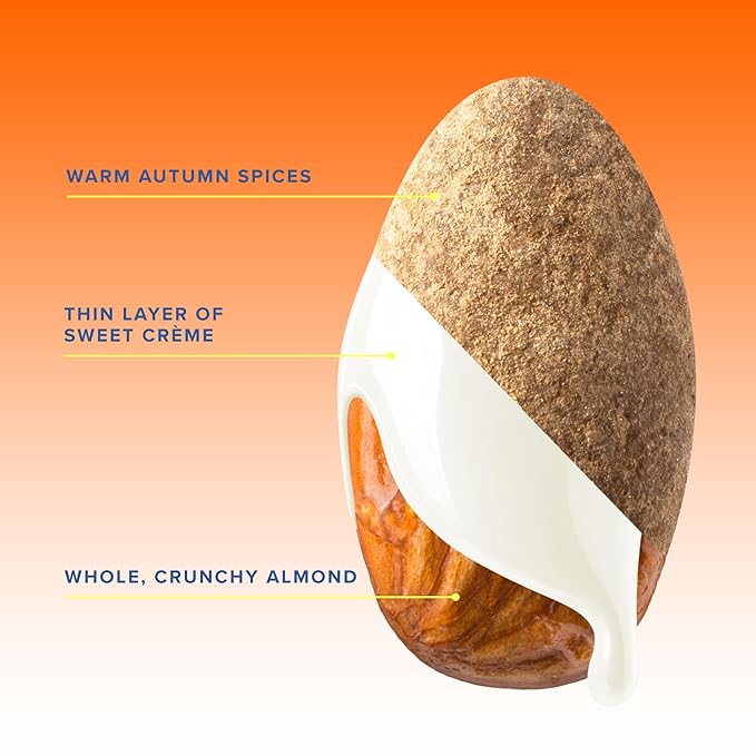- (PUMPKIN) SPICE UP YOUR LIFE. Whole roasted almonds SkinnyDipped in a thin layer of lightly sweetened yogurt, with a hint of warm autumn spices. Packaging may vary.