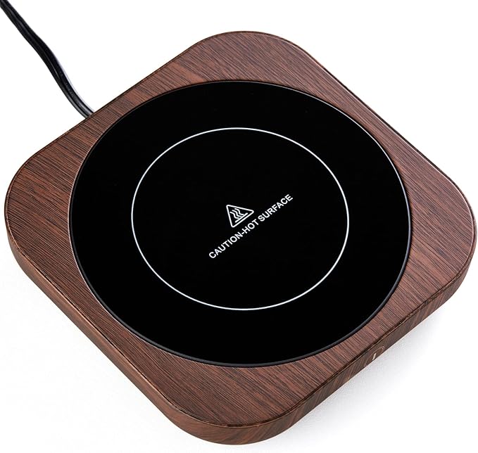 - Stylish Wood Grain Design: With its elegant brown wood grain finish and sleek square shape, this mug warmer enhances any desk or kitchen. Its compact design is both functional and decorative