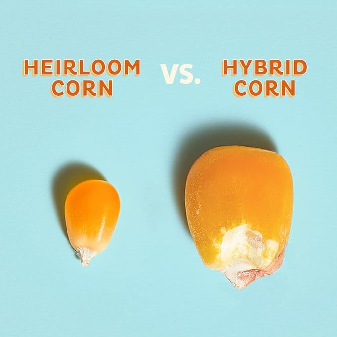- WHAT IS HEIRLOOM CORN? Our Heirloom Popcorn is popped from top tier, hand-selected, Non-GMO seeds that have been passed down from generation to generation. Each bag provides 21g of whole grain.