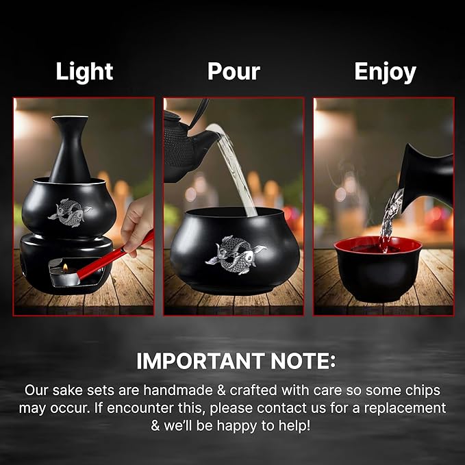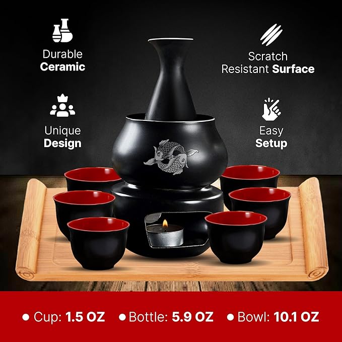 - SAKE SET WITH TRADITION: In Japanese culture, sake is said to have been the gods’ gift to mankind, bringing people together in an act of cleansing and starting anew. Our sake set with warmer is a must for anyone! Honor this wonderful legacy in a unique and beautiful manner with our sake cup set!
