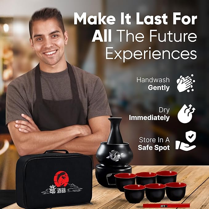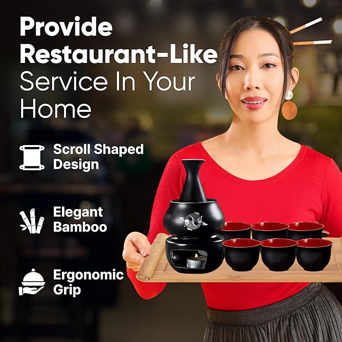 - JAPANESE SAKE DECOR: Our sake set with electric sake warmer is an ideal choice for ceremonies and rituals, at the same time serving as a wonderful decorative centerpiece for your kitchen, living room or office. The sake squirter set has a user-friendly design and is the perfect decor.
