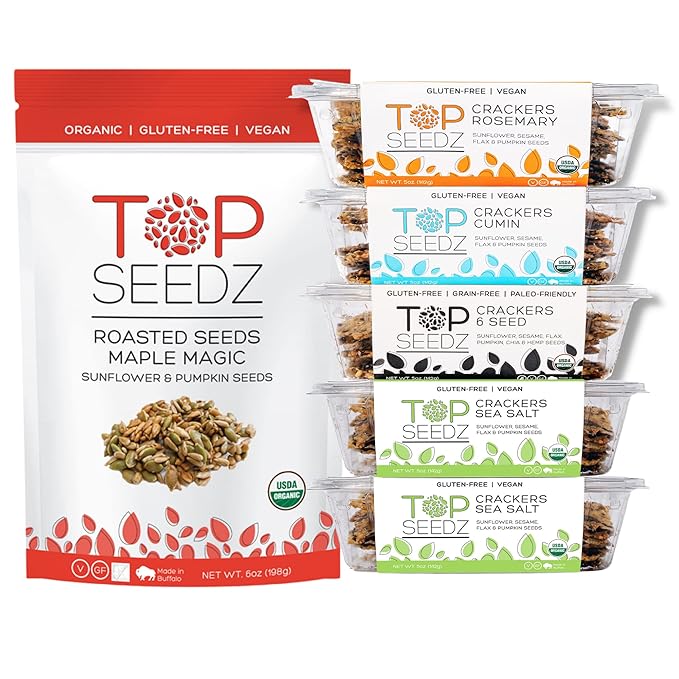 - A Healthy Snack for Everyone: Have a hard time picking snacks for a party? Top Seedz crackers and seeds provide healthy snack options that are also super tasty! These vegan organic crackers and seeds are low in calories and packed with plant based protein, making them the perfect go-to snack!