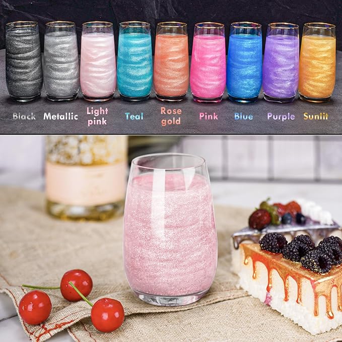 - ✔️【Easy to Use】Specially developed for food decoration and craft industries, this luster dust produces realistic looks by highly pigmented colors with a metallic finish. The pretty fine grain is more convenient for painting. To add glimmer and sparkle to your creations, simply sprinkle or dry brush the luster glitters on them. This product adheres very well to both wet and dry mediums. Attention: Seal and store glitter powder in a cool and dry place after use. Do not expose to excessive heat.