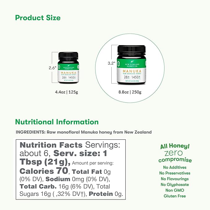 New Zealand Honey Co. Raw Manuka Honey UMF 28+ | MGO 1450+, UMF Certified / 8.8oz