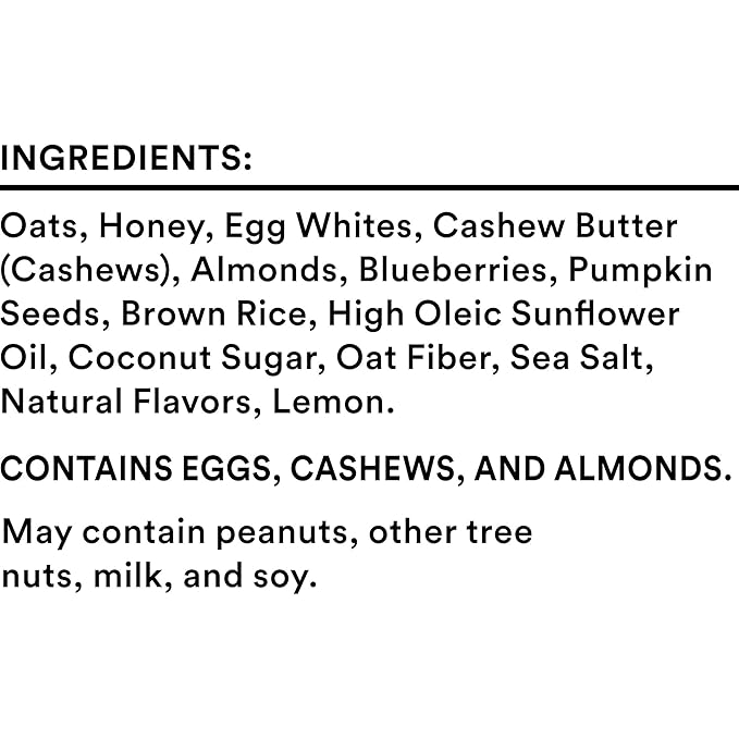 - Discover a delicious protein bar made with simple ingredients: oats, honey, cashews, egg whites, and sweet blueberries