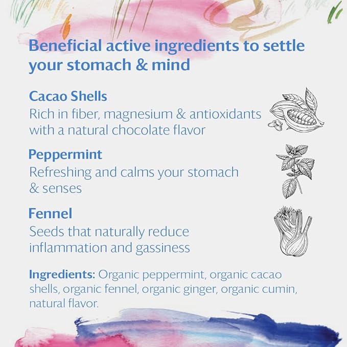 - CONTAINS TRACE AMOUNTS OF CAFFEINE: Our Settle tea naturally contains trace amounts of caffeine from cacao.