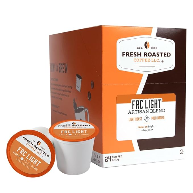 Fresh Roasted Coffee, FRC Light Roast, Artisan Blend, 24 Pods for K Cup Brewers