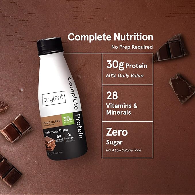 - Includes: 4 11-oz. Soylent Chocolate ready-to-drink complete protein plant-based high protein shakes. Delicious nutrition made for those looking to supplement their protein intake. A great option for breakfast, lunch, pre or post workout.