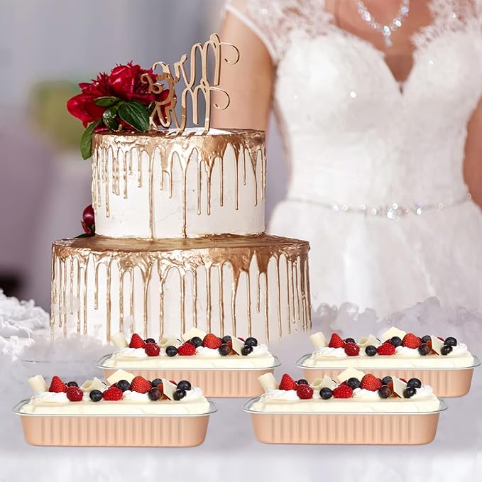 LNYZQUS Disposable Mini Cake Pans with Lids 50 Pack, 6.8oz Rectangle Baking Cups Muffin Tins, Aluminum Foil Baking Tins Mini Loaf Baking Pans Holders-Champagne