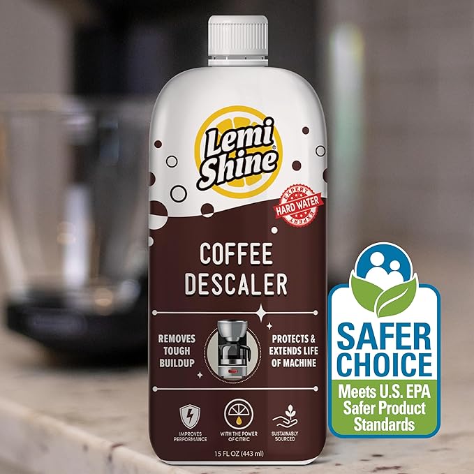 Lemi Shine Coffee Machine Descaler With Powerful Citric Acid | Coffee Maker Cleaning Supplies | Universal Cleaner Works For Nespresso, Keurig, Breville, & More, 4 Uses - 15 oz. Bottle