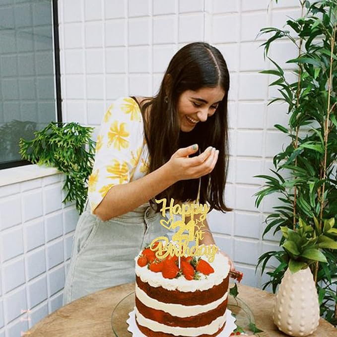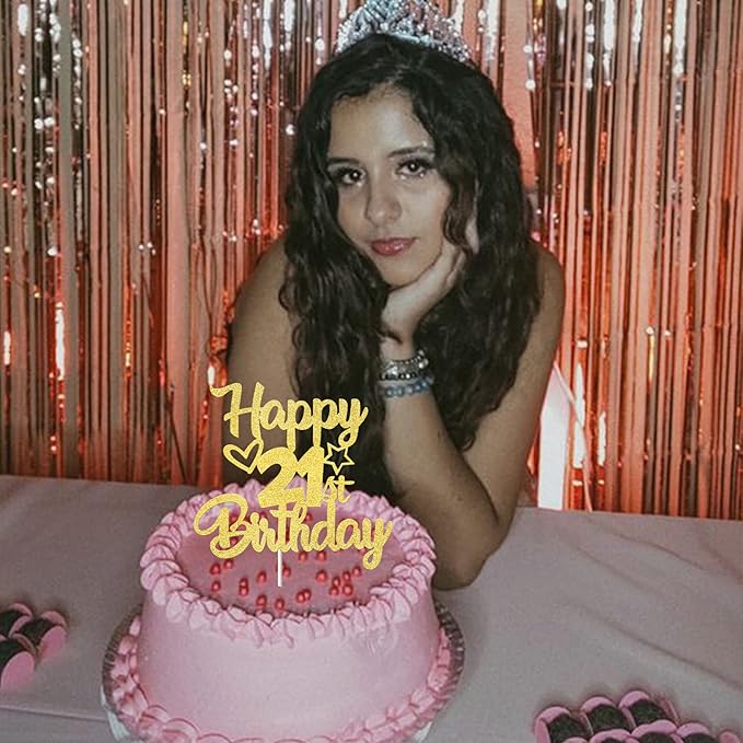 1 Pack Happy 21st Birthday Cake Topper - Glitter Heart Star 21 Fabulous Cake Pick - Black
