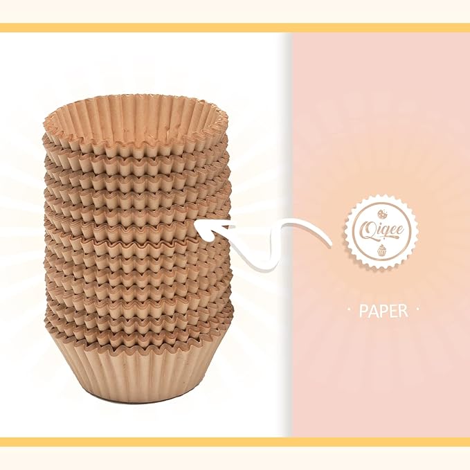 qiqee 600 Count Large Size Cupcake Liners Natural Muffin Liners Food Grade Jumbo Baking Cups Paper No Smells (Large Size)