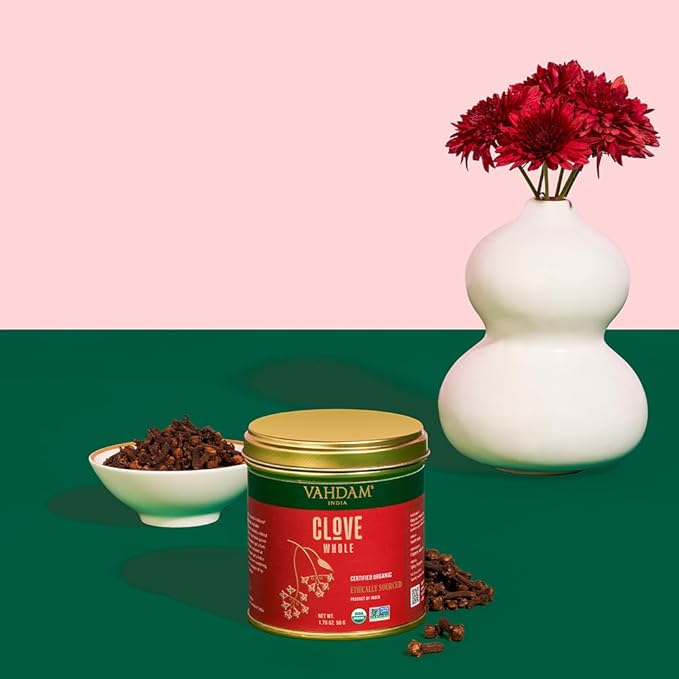 VAHDAM, Organic Clove Whole (1.7oz/50g) Handpicked Whole Cloves, Gluten Free, Non GMO, 100% Raw | Warm & Flavorful Spice | Great for Cooking, Smoothies, Pomander Balls, Potpourri & Tea