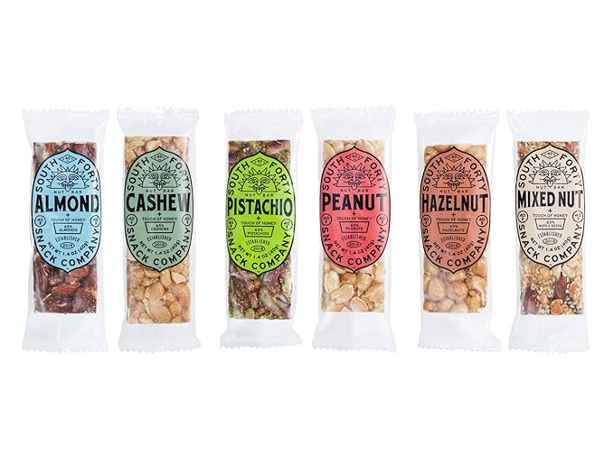 South 40 Snacks Crunchy Nut Bars, Mix of 6 Variety Pack, Touch of Honey, Natural Protein (40g Bar, Pack of 12)