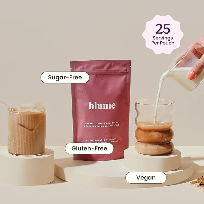 Blume Oat Milk Chai Latte - Organic Chai Source from India - Super Latte with Milk Thistle, Fennel and Ginger Root - Sugar-Free, Gluten-Free and Vegan - 30 Servings