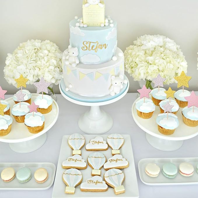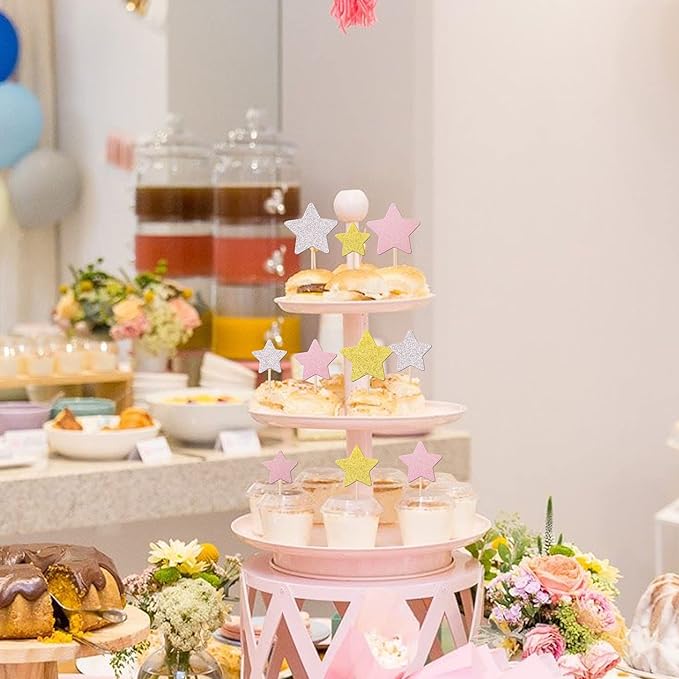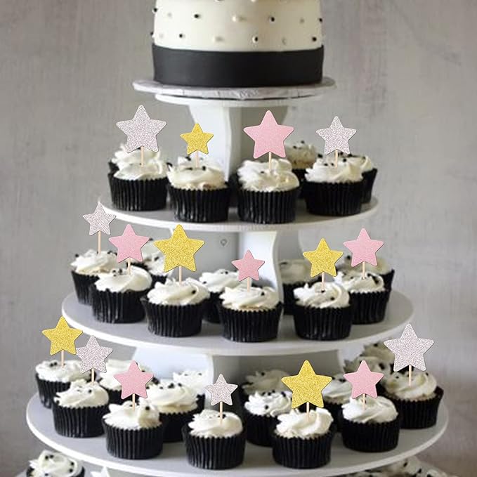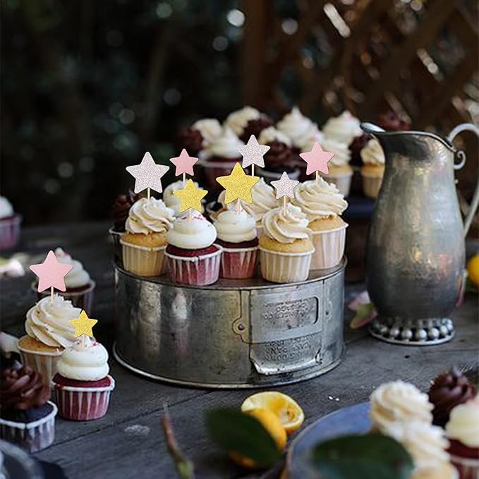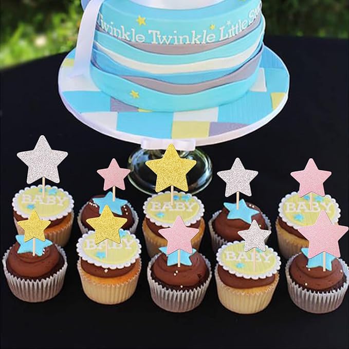 30 PCS Little Star Cupcake Toppers Silver Pink Gold Glitter Twinkle Star Cupcake Picks Bridal Shower Cake Decorations for Wedding Engagement Baby Shower Birthday Party Supplies
