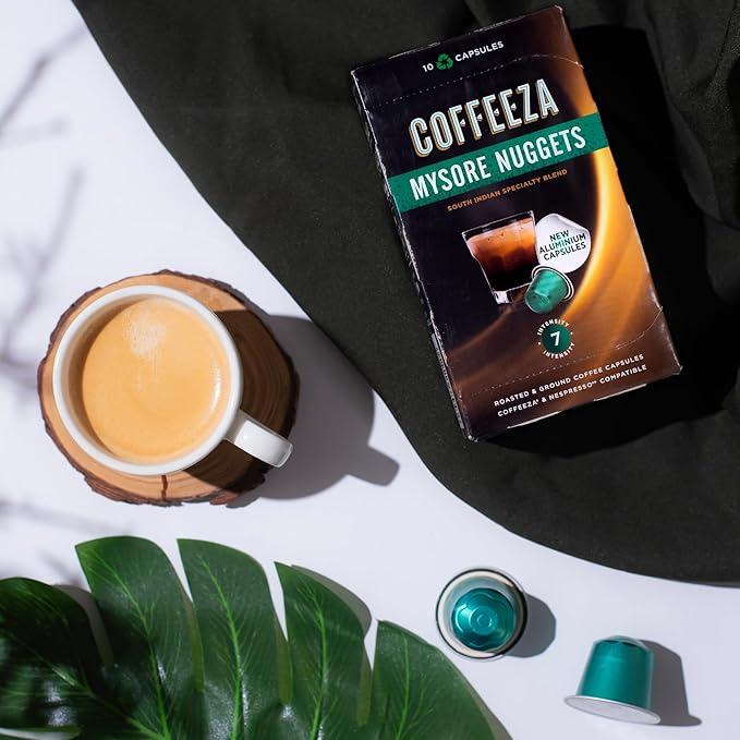 Coffeeza (AAA Arabica Grade) Mysore Nuggets Aluminium Coffee Capsules, Intensity – 7/10 -(Box of 30)