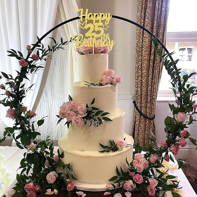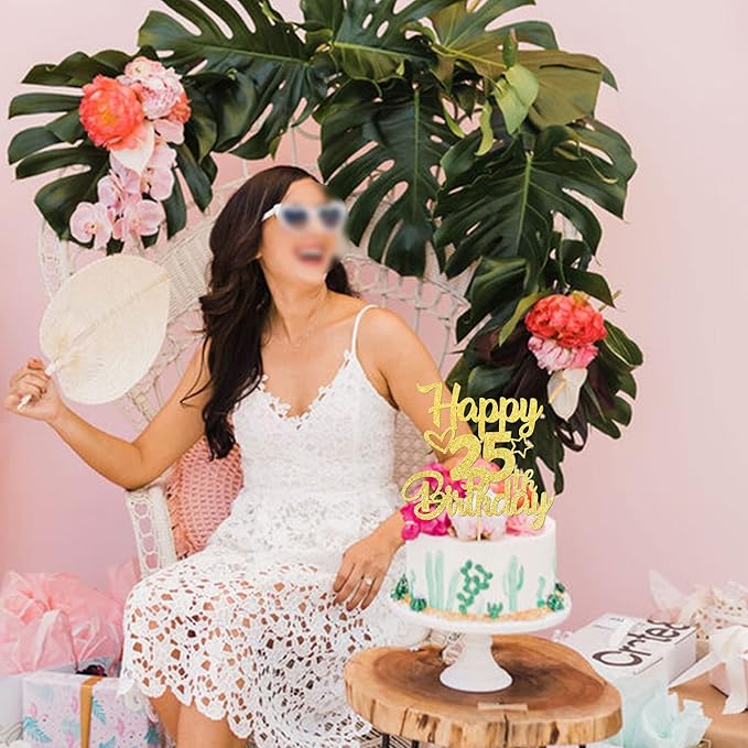 1 Pack Happy 25th Birthday Cake Topper Glitter Heart Star 25 Fabulous Cake Pick Birthday Sign Cake Decorations for Children 25th Birthday Theme Party Supplies Gold
