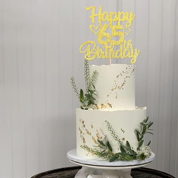 1 Pack Happy 65th Birthday Cake Topper Glitter Heart Star 65 Fabulous Cake Pick Birthday Sign Cake Decorations for Children 65th Birthday Theme Party Supplies Gold