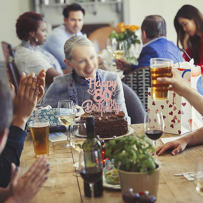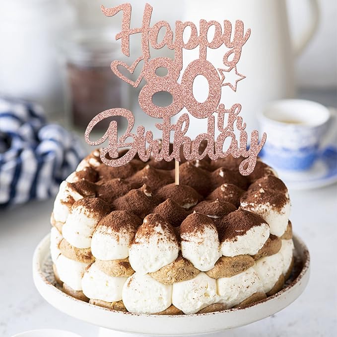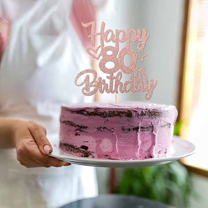 1 Pack Happy 80th Birthday Cake Topper Glitter Heart Star 80 Fabulous Cake Pick Birthday Sign Cake Decorations for 80th Birthday Theme Party Supplies Rose Gold